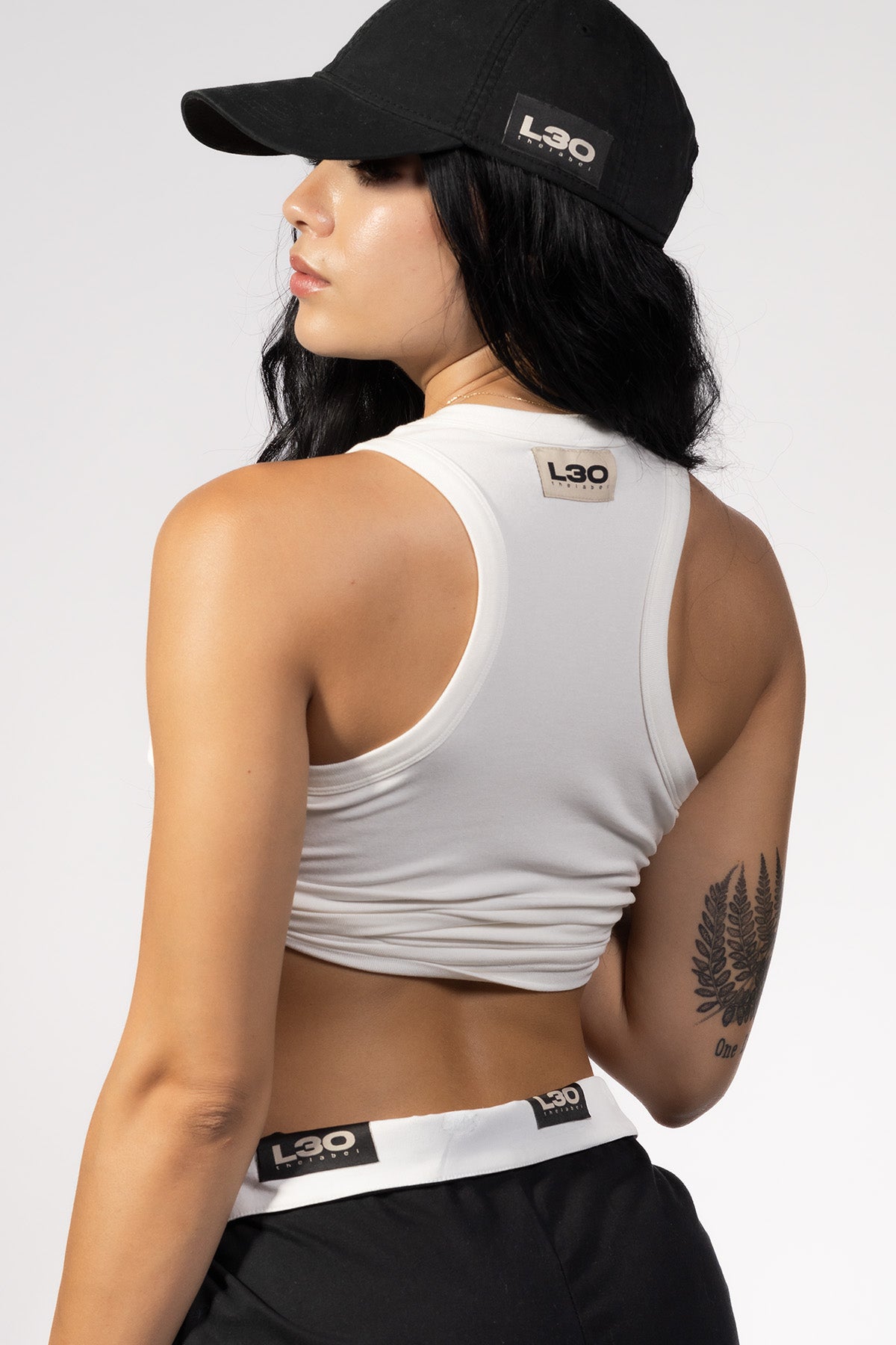 Full-length tank top with a high neck neckline. Featuring our signature logo patch on the back