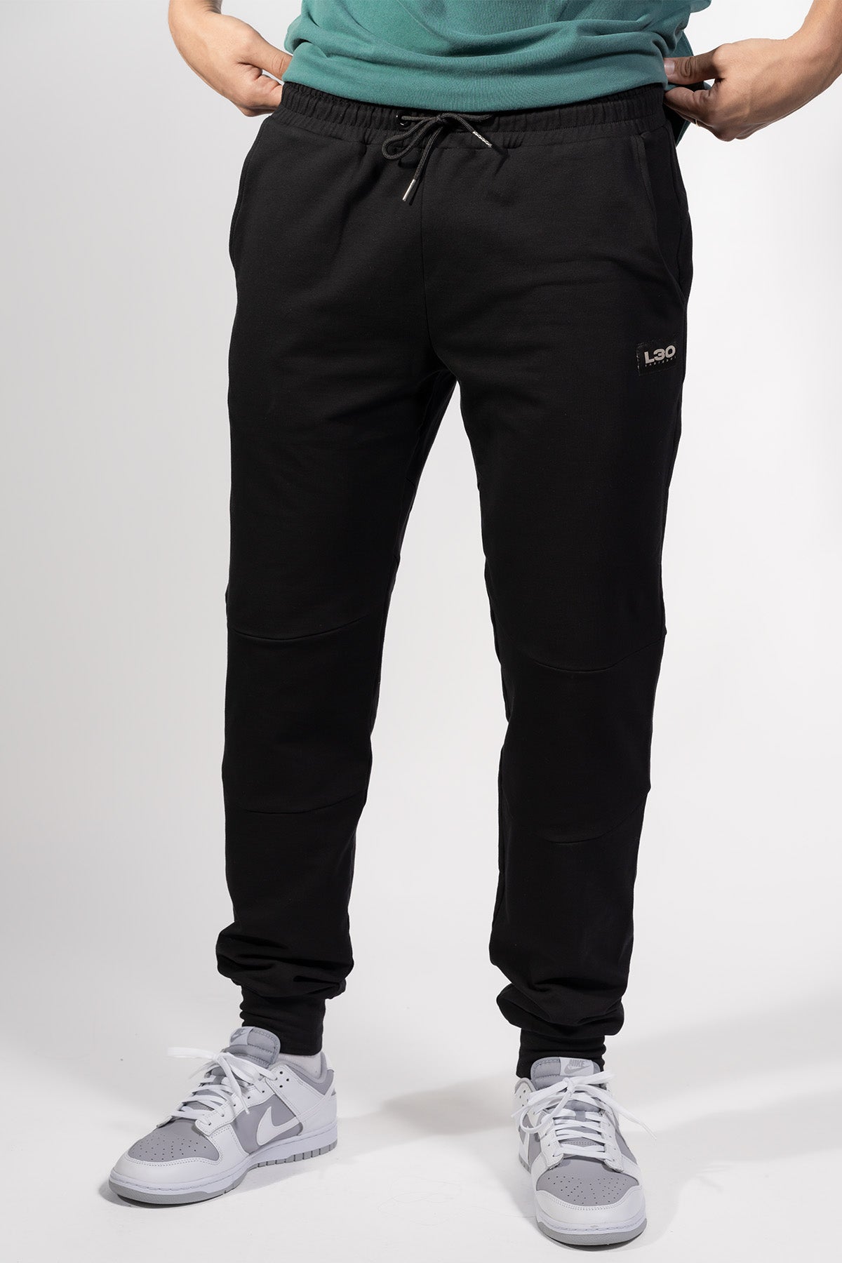 Our performance jogger has an oversized fit with an elastic waistband and gathered ankle cuffs. Features drawstring at the waist, with our signature logo patch on the pocket