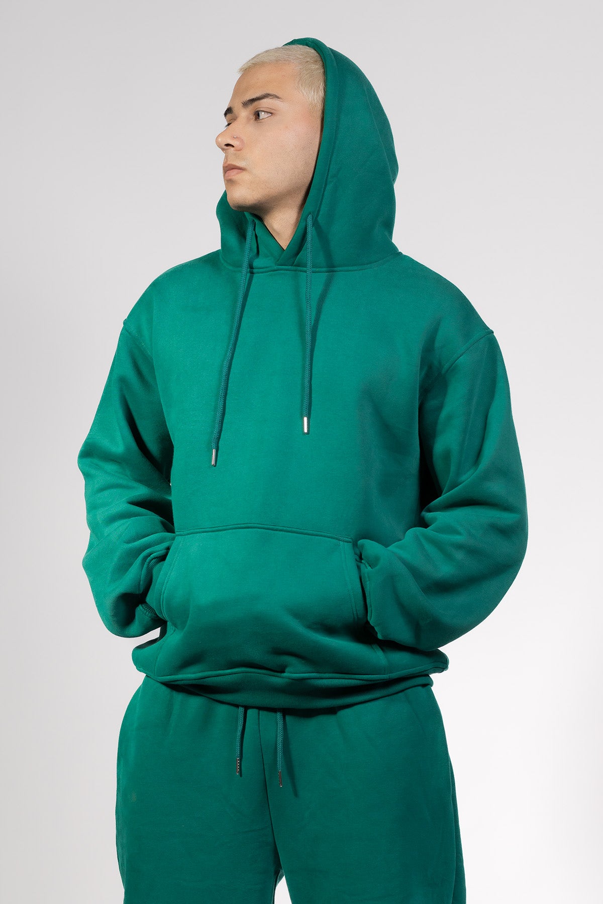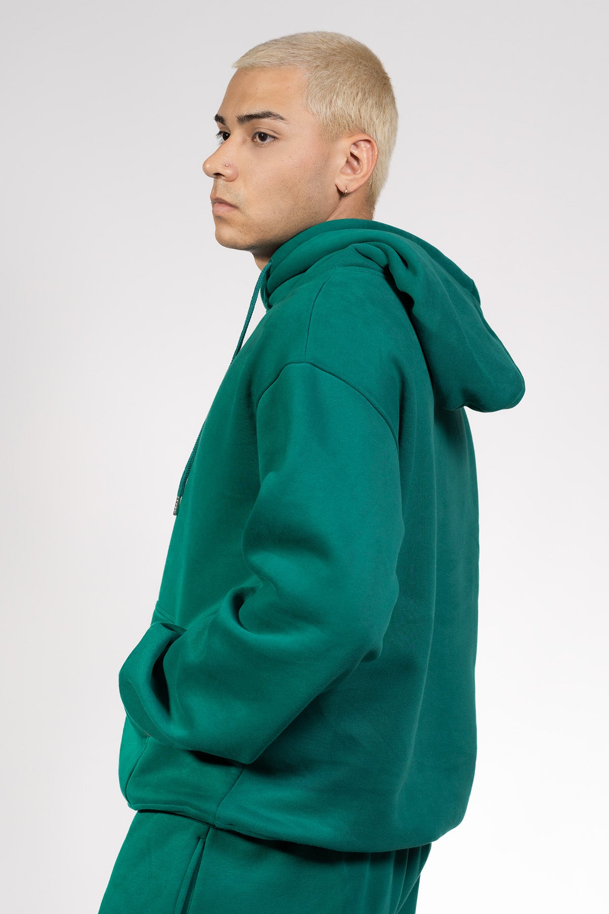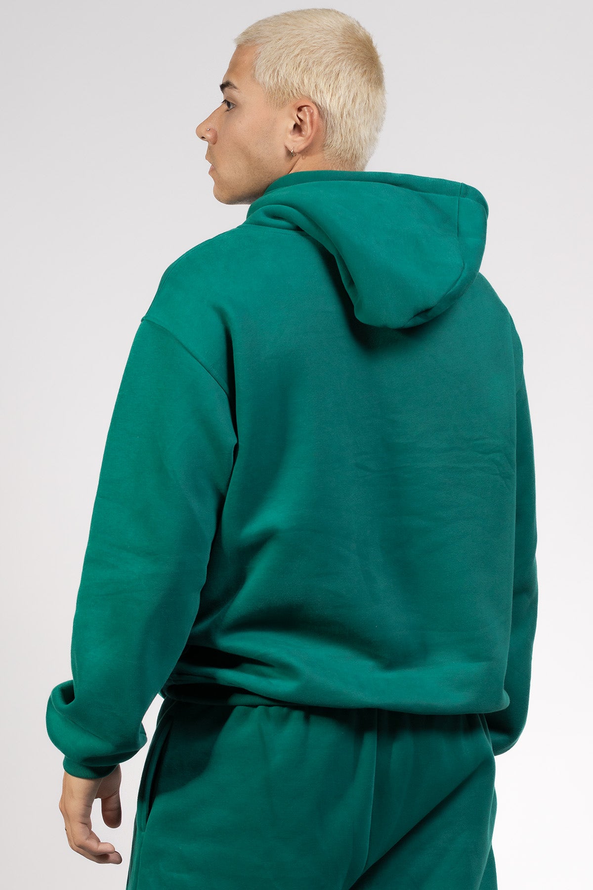 Details: oversized unisex hoodie sweatshirt with a large kangaroo pocket and ribbed banding at the hem and cuffs. Features our signature logo patch on the arm.
